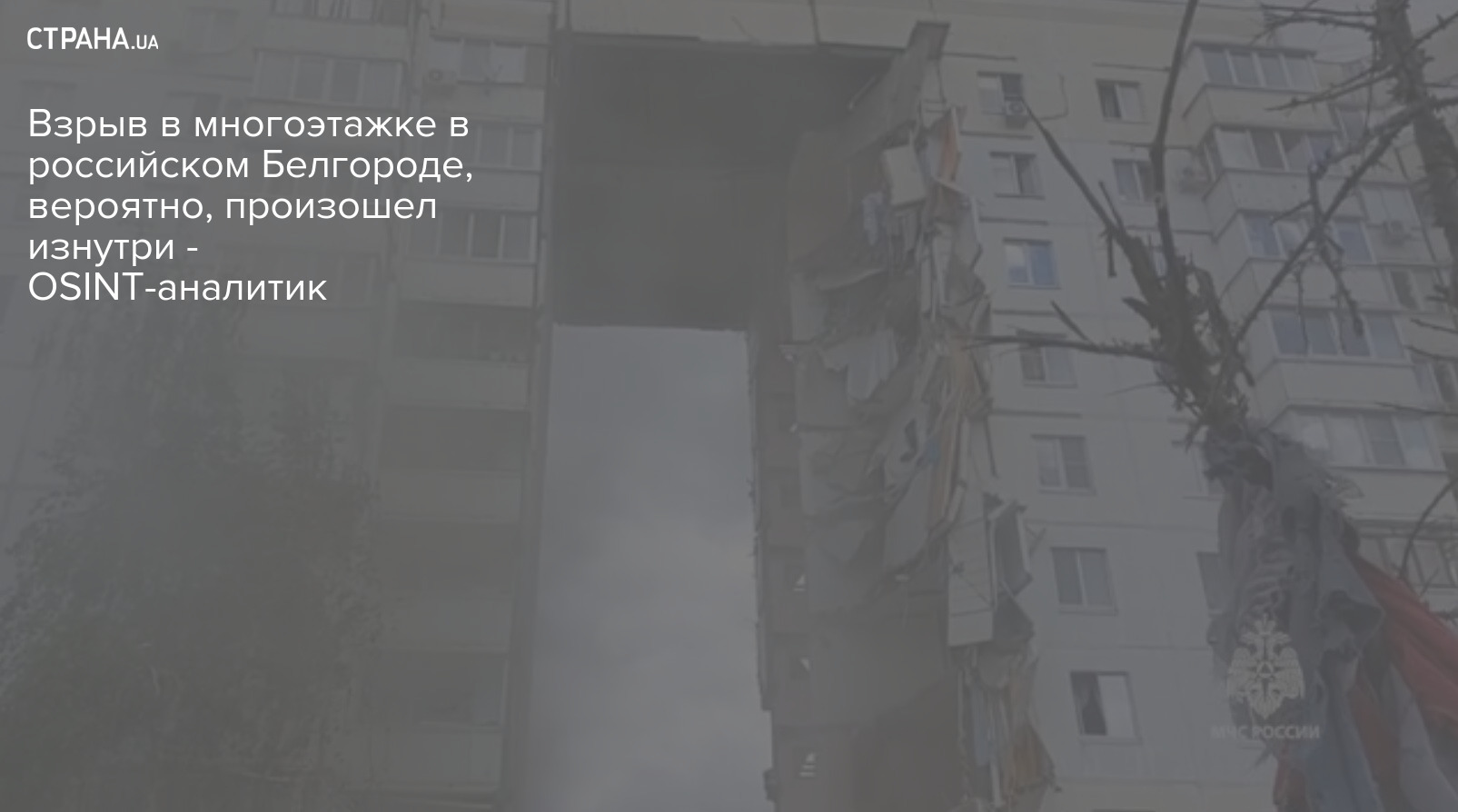 Взрыв в многоэтажке в российском Белгороде, вероятно, произошел изнутри - OSINT-аналитик