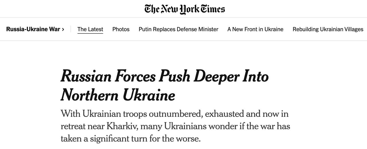 Отмечается, что российские войска успешно продвигаются на харьковском направлении, занимая населенные пункты, "вероятно, наиболее быстрыми темпами с первых дней" войны, что, по оценкам телеканала, должно стать поводом для "наибольшего беспокойства Украины".