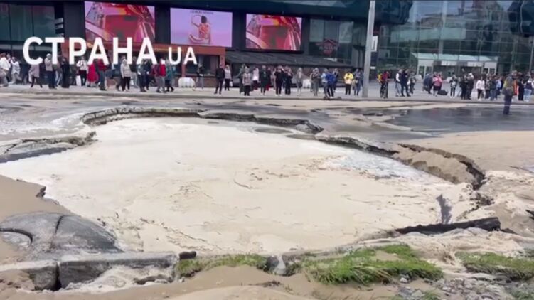 Последствия прорыва трубы в Киеве. Скриншот из видео