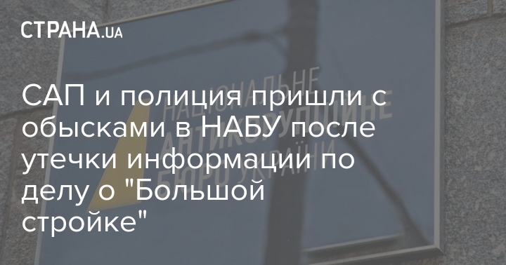Специализированная антикоррупционная прокуратура (САП) и полиция проводят обыски в Национальном антикоррупционном бюро Украины (НАБУ) в рамках расследования об утечке информации в резонансном уголовном деле относительно "большого строительства".