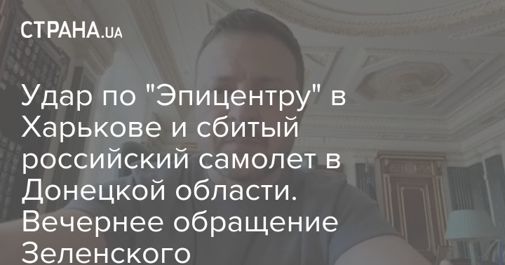 Удар по "Эпицентру" в Харькове и сбитый российский самолет в Донецкой области. Вечернее обращение Зеленского