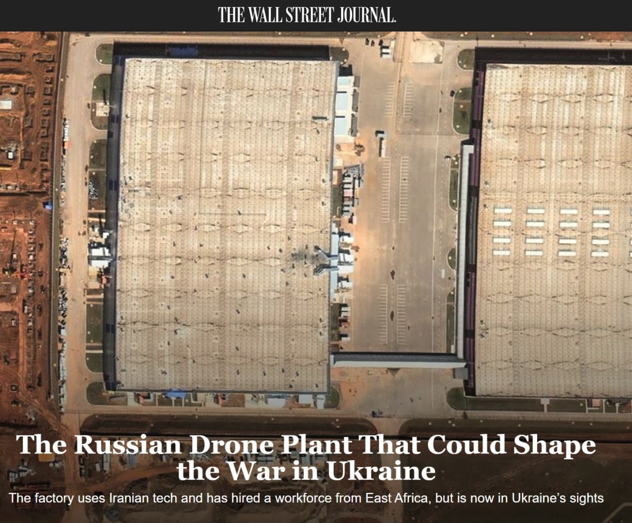 Завод использует иранские технологии и нанял рабочих из Восточной Африки. Теперь он планирует выпускать 6000 ударных БПЛА Shahed в год, пишет Wall Street Journal.