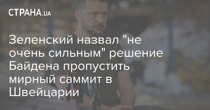 Президент Украины Владимир Зеленский назвал "не очень сильным" решение Байдена пропустить мирный саммит в Швейцарии.