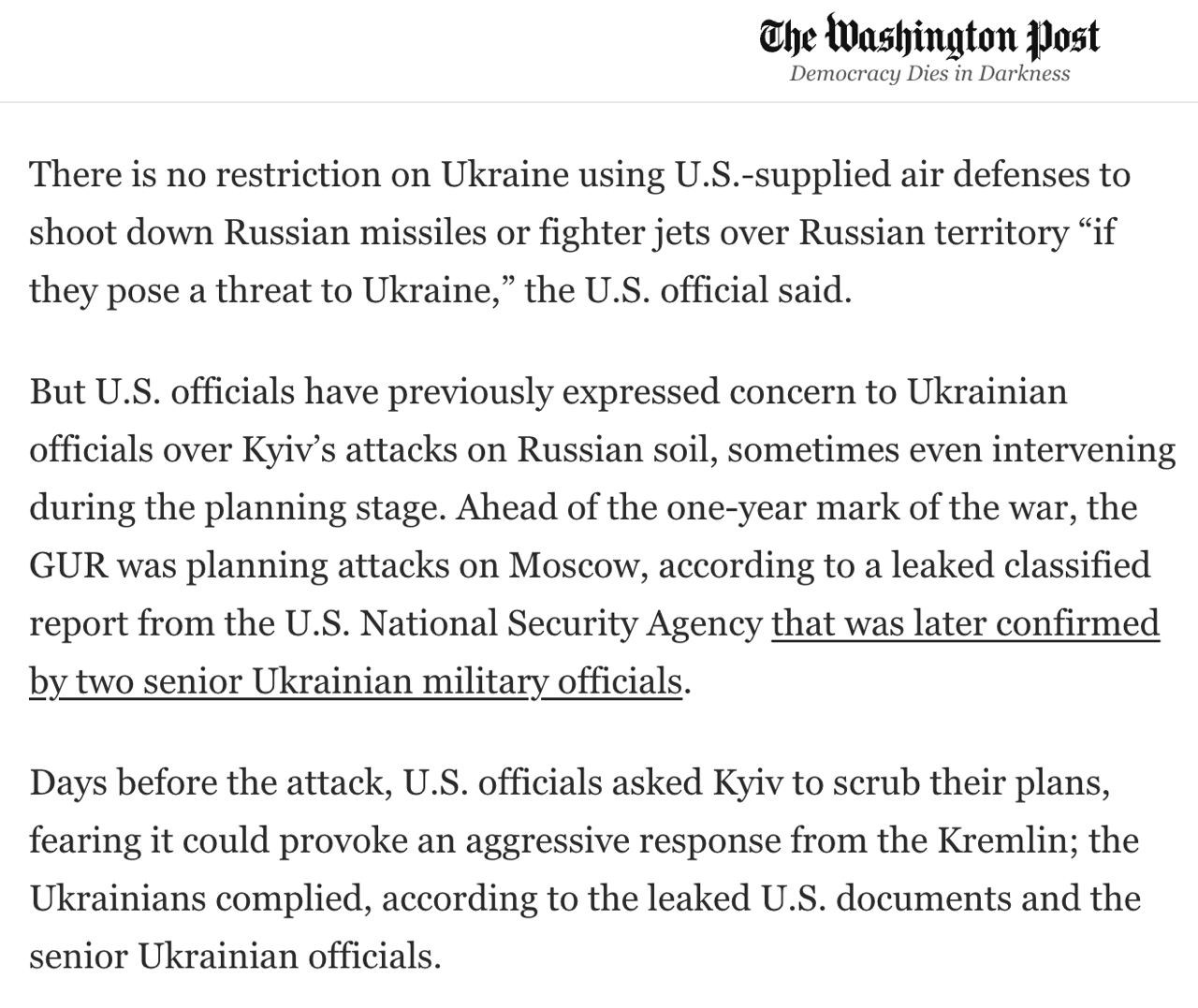Однако бывали случаи, когда американские чиновники выражали озабоченность по поводу атак на территорию РФ и даже отменяли такие планы. В частности, была отменена запланированная атака ГУР на Москву. Американцы опасались агрессивного ответа Кремля.