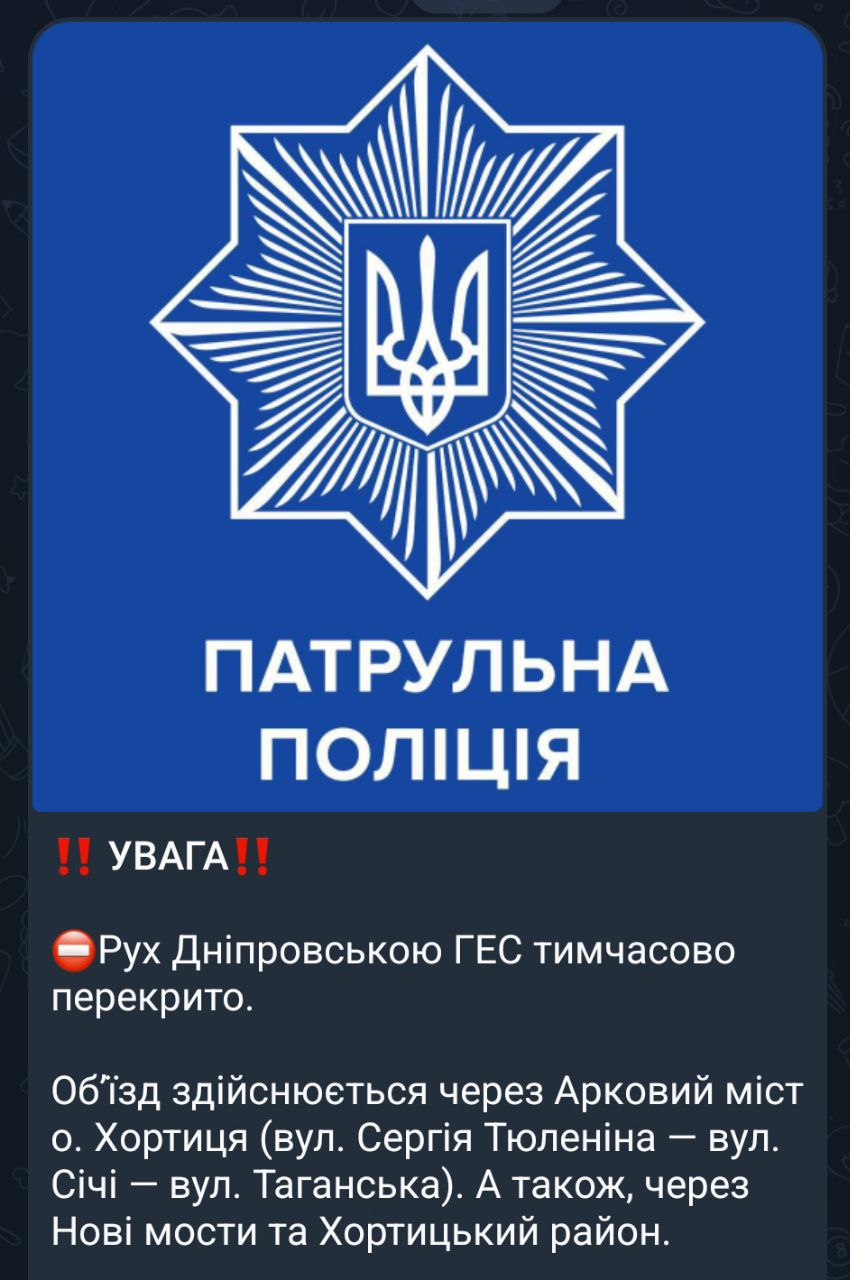 08:30 После ночной ракетной атаки по Украине перекрыли проезд через дамбу ДнепроГЭСа.