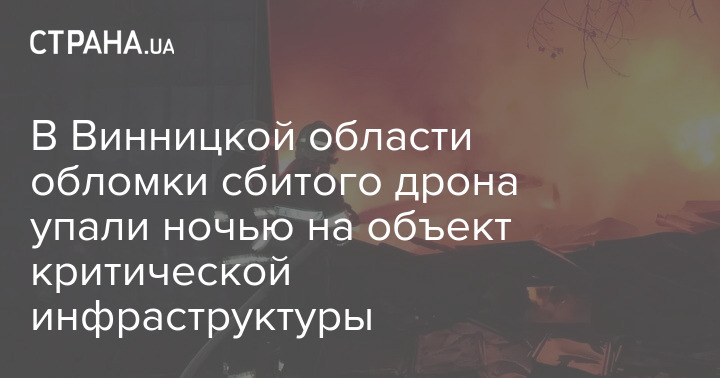 Сегодня ночью обломки сбитого дрона упали на объект критической инфраструктуры в Винницкой области. Был пожар. Пострадавших нет.