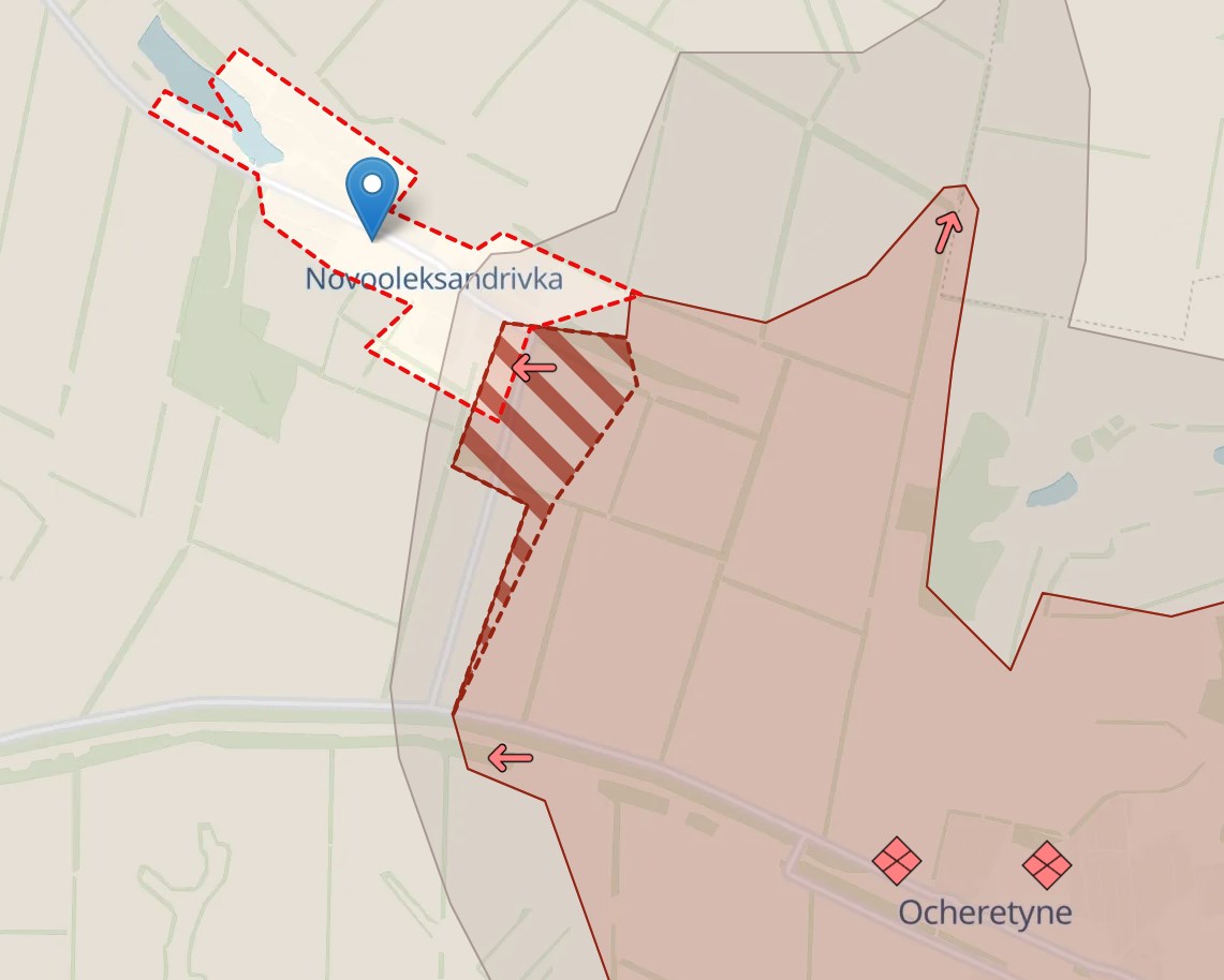 Третье продвижение - к северо-западу от Очеретино на Покровском направлении. Судя по карте Deep State, российские войска вошли на окраины села Новооалександровка.