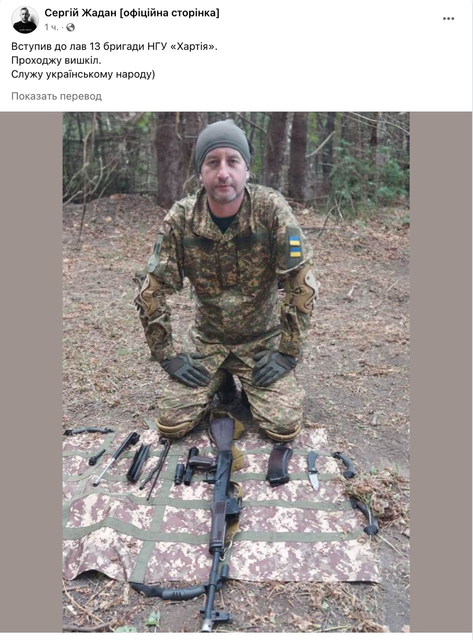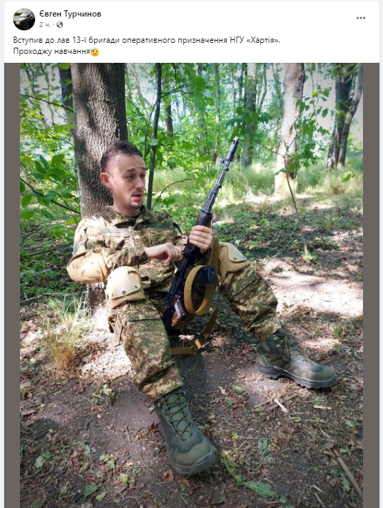 "Вступил в ряды 13-й бригады НГУ "Хартия". Прохожу обучение. Служу украинскому народу", - написал он.
