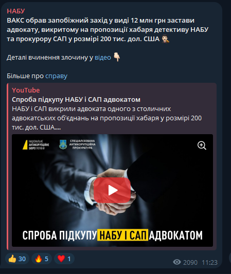 Носова подозревают в предложении взятки детективу НАБУ и прокурору САП в размере 200 тысяч долларов за передачу дела своего подзащитного в другой орган досудебного расследования.