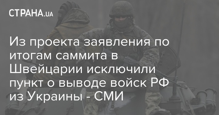 Из проекта совместного заявления по итогам мирного саммита в Швейцарии исключили пункт о выводе российских войск из Украины по требованию некоторых азиатских и ближневосточных стран.
