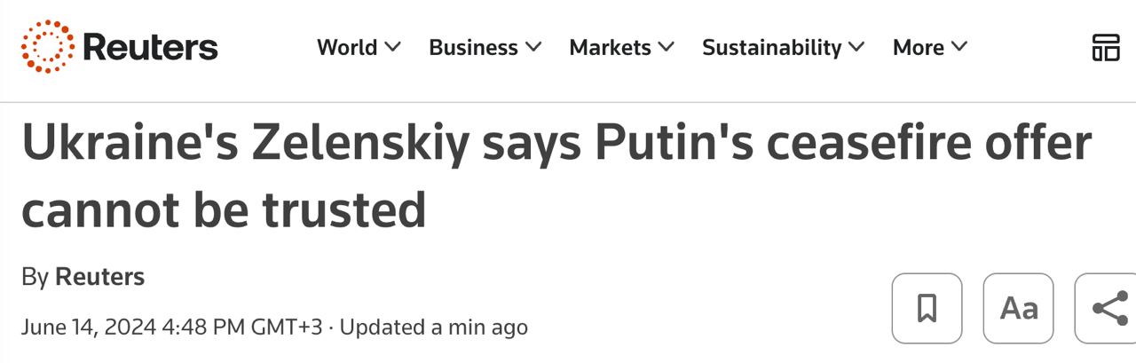 Между тем в НАТО план Путина тоже отвергли и заверили, что страны Альянса продолжат оказывать военную поддержку Киеву.