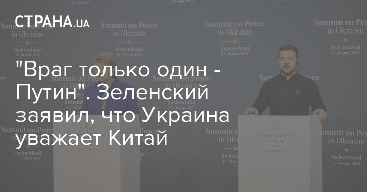 "Враг только один - Путин". Зеленский заявил, что Украина уважает Китай