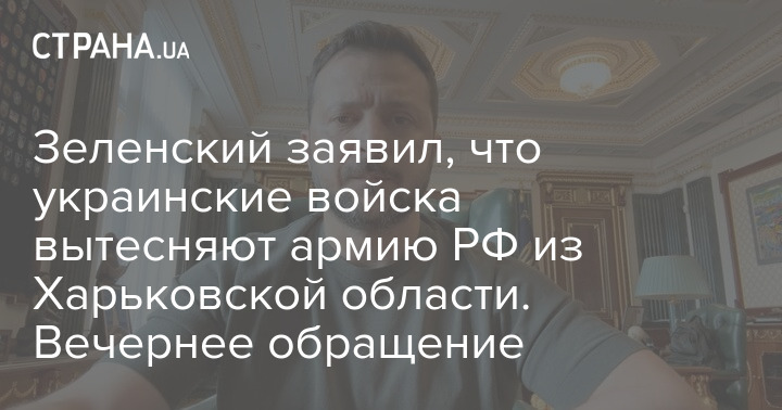 Зеленский заявил, что украинские войска вытесняют армию РФ из Харьковской области. Вечернее обращение
