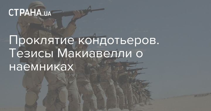 "Войско, которым государь защищает свою страну, бывает либо собственным, либо союзническим, либо наемным, либо смешанным. Наемные и союзнические войска бесполезны и опасны; никогда не будет ни прочной, ни долговечной та власть, которая опирается на наемное войско, ибо наемники честолюбивы, распущенны, склонны к раздорам, вероломны и нечестивы. А в мирное же время они разорят тебя не хуже, чем в военное неприятель. Надо ли доказывать то, что и так ясно: чем иным вызвано крушение Италии, как не тем, что она долгие годы довольствовалась наемным оружием?