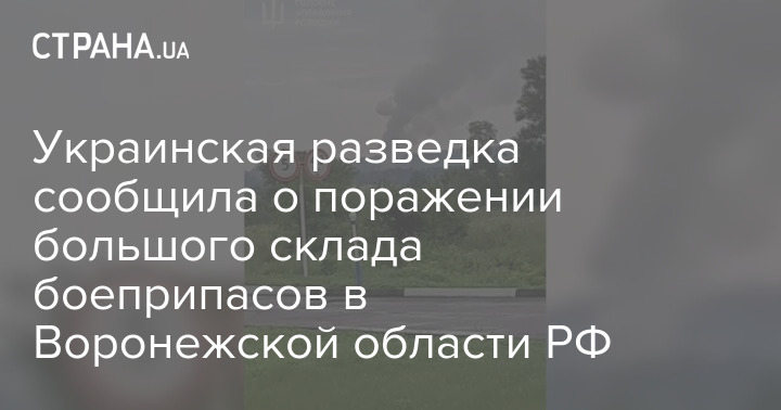 Главное управление разведки Министерства обороны Украины заявило о поражении большого склада боеприпасов в Воронежской области РФ.