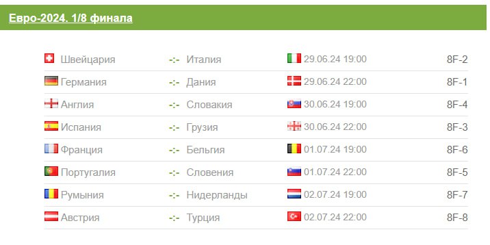 • Румыния - Нидерланды (2 июля, Мюнхен);