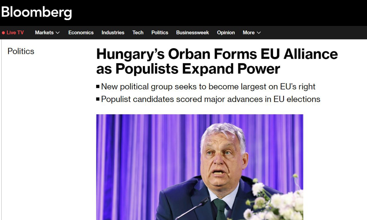 На брифинге венгерский премьер заявил, что политическая группа берет на себя ответственность "основать фракцию, которая будет самой сильной правой группировкой в Европе".