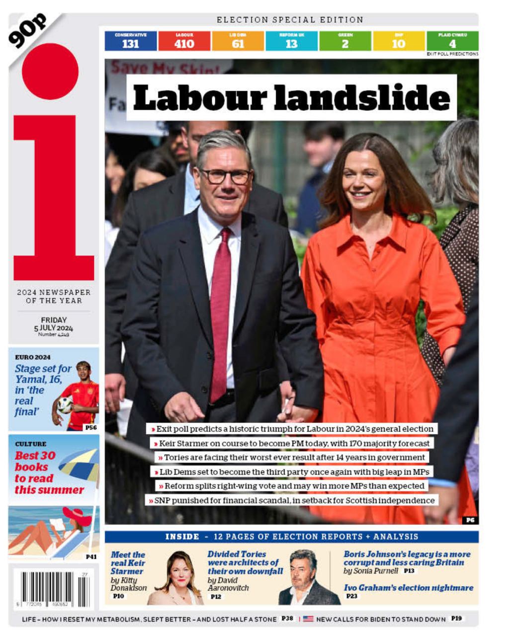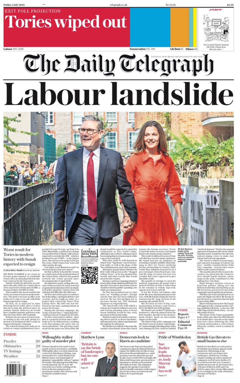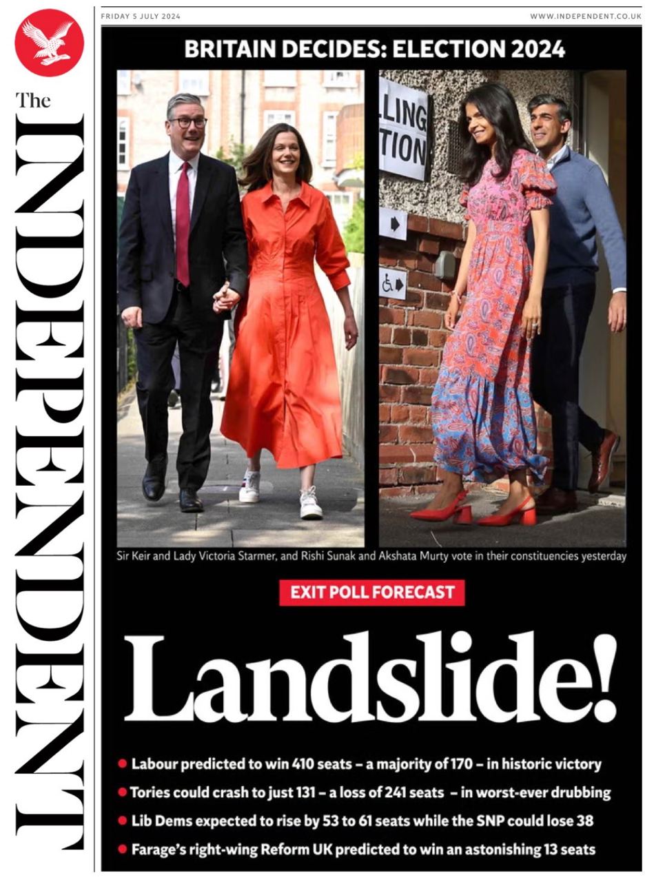 На обложках британских газет сегодня утром одно слово: landslide ("убедительная победа"). Так они комментируют результаты парламентских выборов, на которых разгромно проиграла Консервативная партия премьера Риши Сунака.