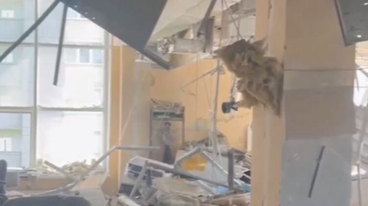 Последствия удара по медцентру в Киеве. Скриншот видео