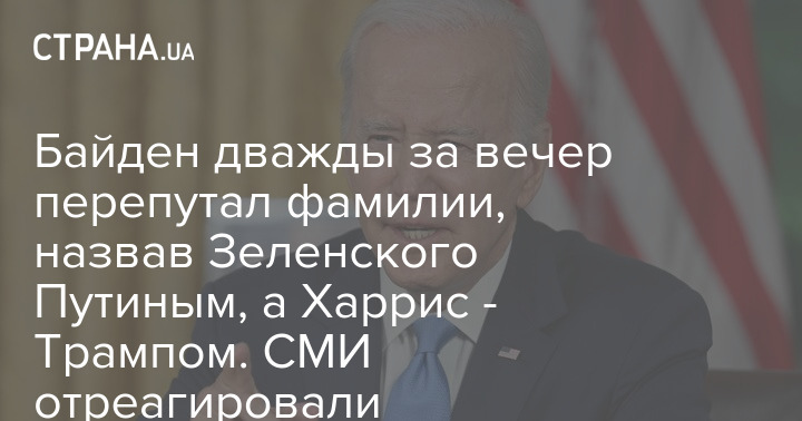 Президент США Джо Байден дважды за вечер грубо перепутал фамилии - назвав президента Украины Владимира Зеленского Путиным, а вице-президента США Камалу Харрис - Трампом.