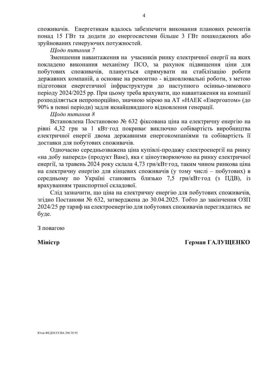Об этом говорится в ответе министра энергетики Германа Галущенко на запрос народного депутата Алексея Кучеренко.