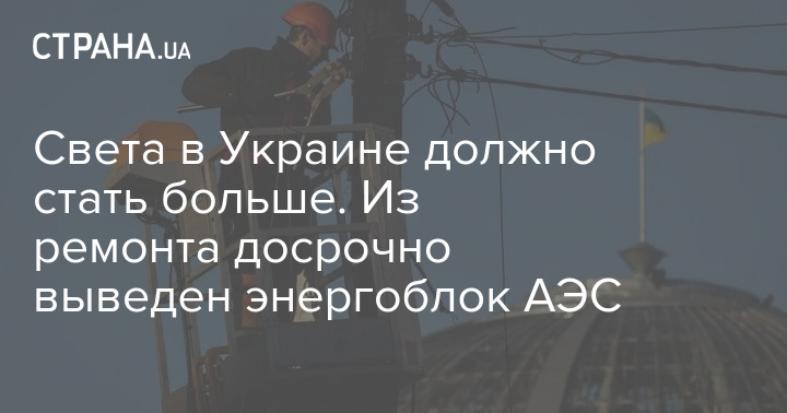 Министерство энергетики сообщает, что в ближайшее время света в Украине должно стать больше. Это обусловлено тем, что энергетики досрочно закончили плановый ремонт атомного энергоблока и подключили его к энергосистеме.