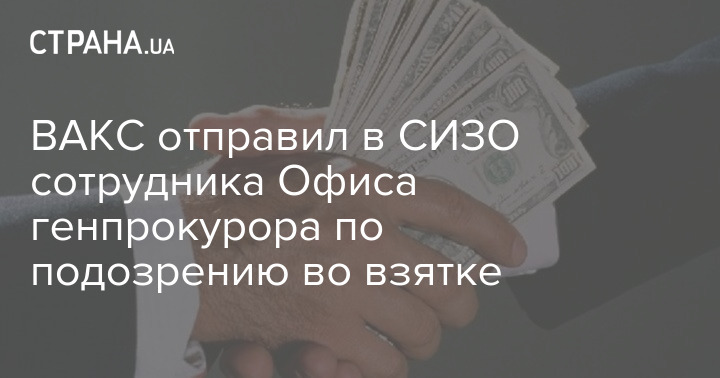 Высший антикоррупционный суд (ВАКС) Украины отправил в СИЗО прокурора из Офиса генпрокурора, подозреваемого в получении 170 тысяч долларов взятки.