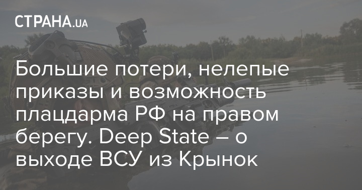 Большие потери, нелепые приказы и возможность плацдарма РФ на правом берегу. Deep State – о выходе ВСУ из Крынок