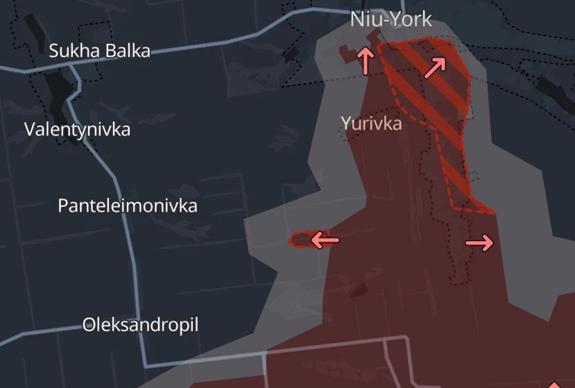 К югу от Торецка - в Нью-Йорке. Там расширен контроль над южными кварталами поселка, также бои продвинулись ближе к центру, следует из карты украинского военного паблика DeepState.