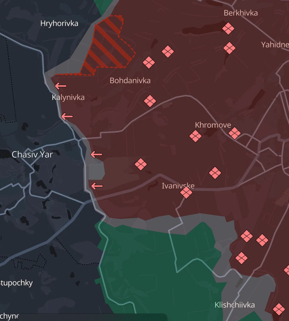Кроме того, россияне продвинулись в районе Калиновки к северу от Часова Яра, сообщает Deep State.