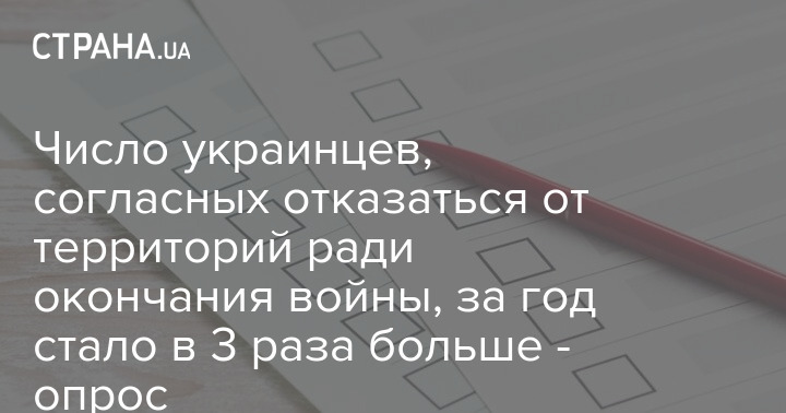 Доля украинцев, согласных отказаться от территорий ради окончания войны, за год возросла в три раза.