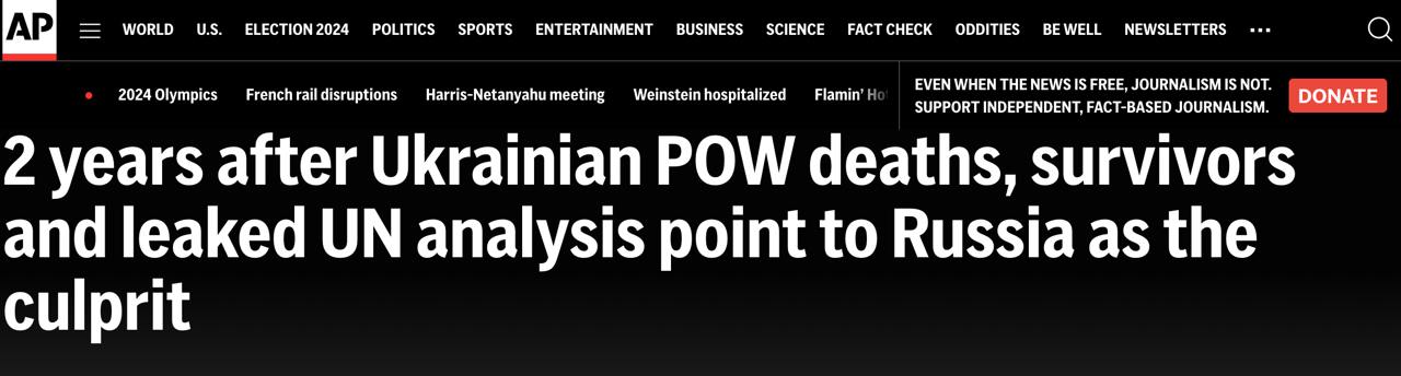 К такому выводу пришли авторы расследования из агентства Associated Press, ссылаясь на неопубликованный доклад ООН и показания очевидцев - пленных, которые вернулись в Украину.