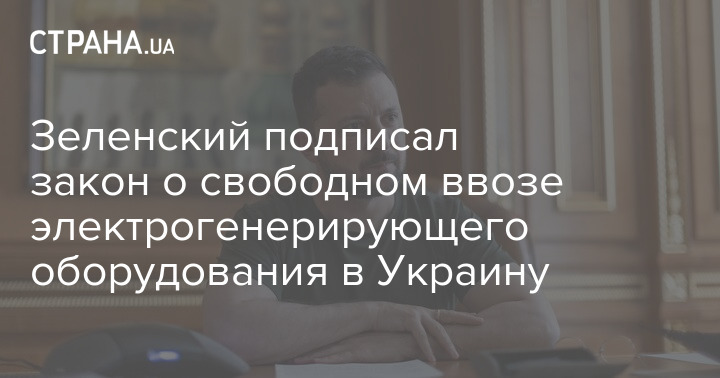 Зеленский подписал закон о свободном ввозе электрогенерирующего оборудования в Украину