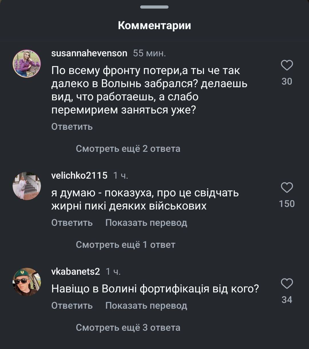 Под постом Владимира Зеленского о его поездке на Волынь, где он осмотрел строительство фортификаций и провел совещание по безопасности северных регионов Украины, появилось много комментариев с критикой.