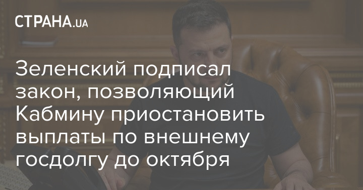 Президент Украины Владимир Зеленский подписал закон, позволяющий Кабинету министров приостановить выплаты по внешнему государственному долгу до 1 октября 2024 года.