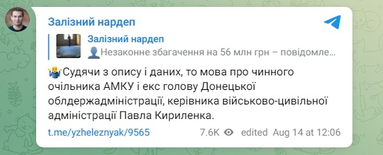 Народный депутат из "Голоса" Ярослав Железняк предполагает, что речь идет о главе Антимонопольного комитета Украины и экс-руководителе Донецкой ОВА Павле Кириленко.