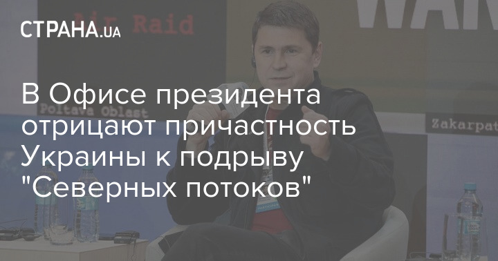 Советник главы Офиса президента Михаил Подоляк отрицает причастность Украины к подрыву "Северных потоков" и заявляет, что это сделала Россия.