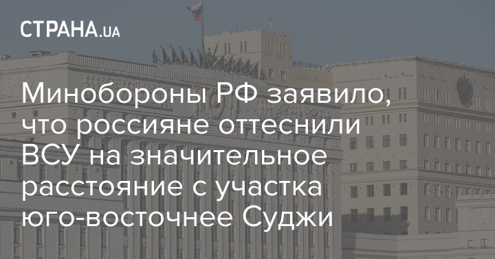 Минобороны РФ заявило, что россияне оттеснили ВСУ на значительное расстояние с участка юго-восточнее Суджи