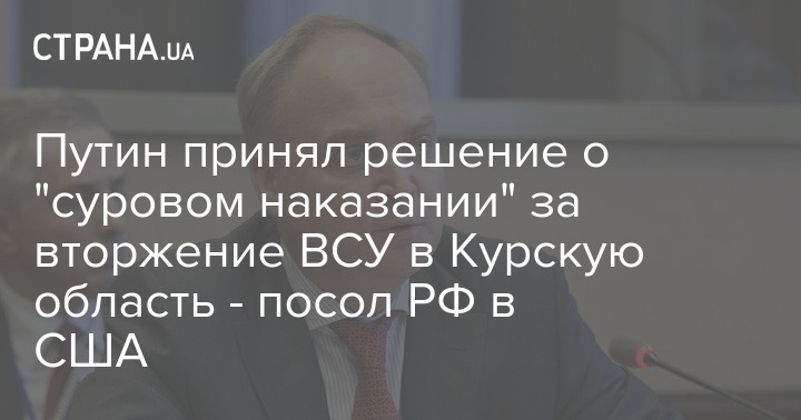 Владимир Путин принял решение о "суровом наказании" за вторжение ВСУ в Курскую область. Об этом заявил посол России в США Анатолий Антонов.