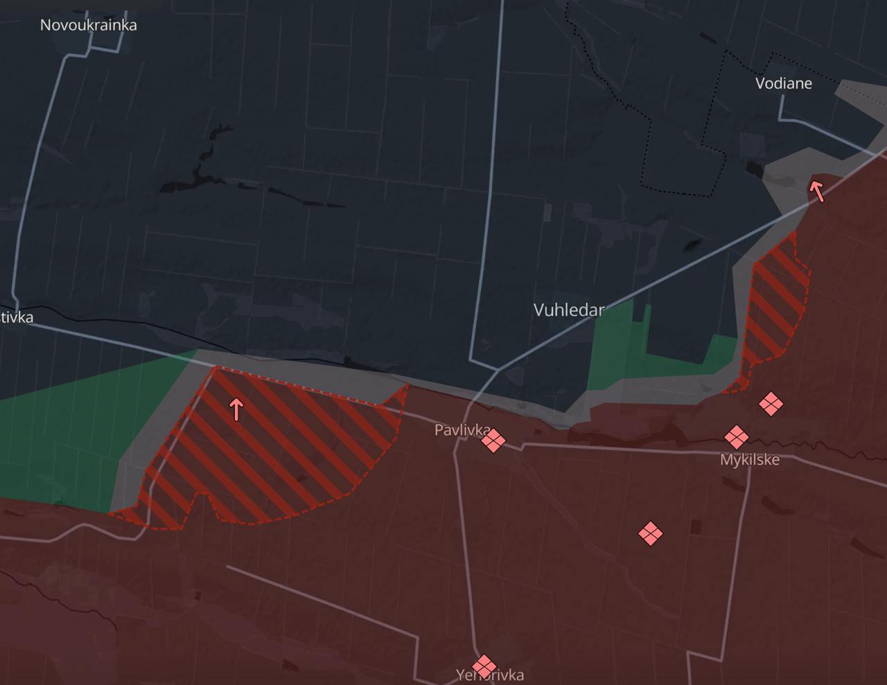У РФ за минувшие сутки два крупных продвижения к западу и востоку от Угледара Донецкой области. Об этом свидетельствует карта военного паблика Deep State.