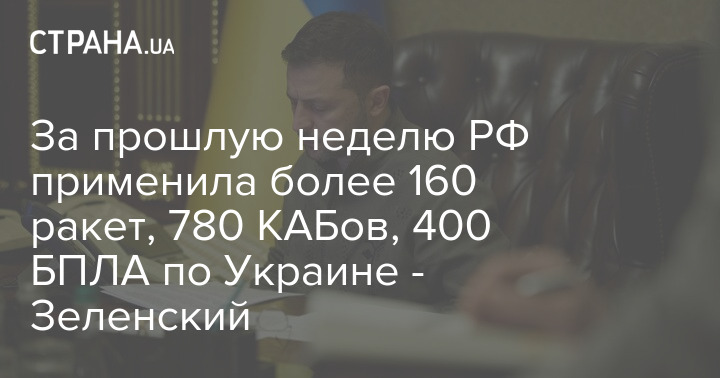 За прошлую неделю РФ применила более 160 ракет, 780 КАБов, 400 БПЛА по Украине - Зеленский