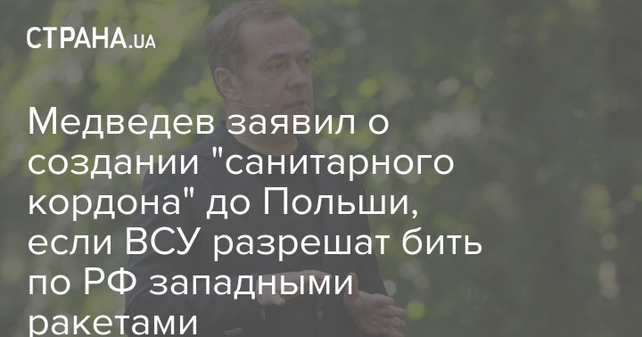 Заместитель председателя Совета безопасности РФ Дмитрий Медведев заявил, что России нужно будет организовать "санитарный кордон до Польши", если Украина получит право на использование дальнобойного оружия по РФ.