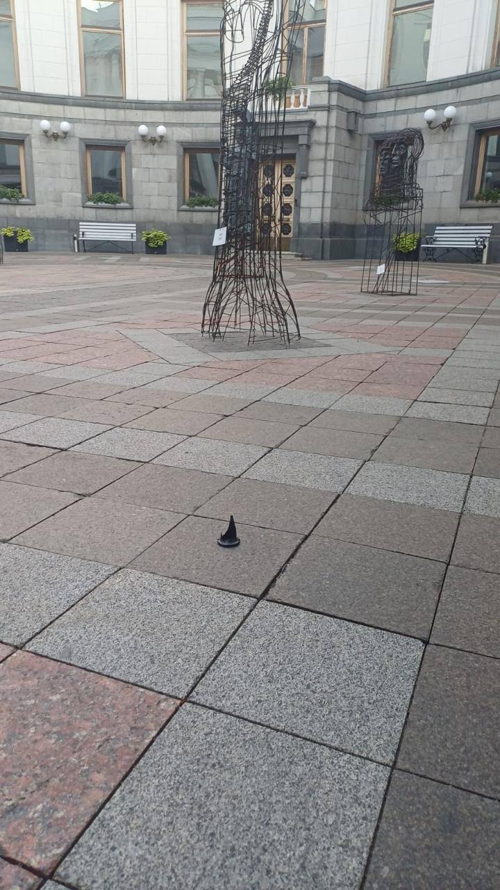 Рада выложила у себя в Телеграме фото обломков дрона, который атаковал здание парламента.