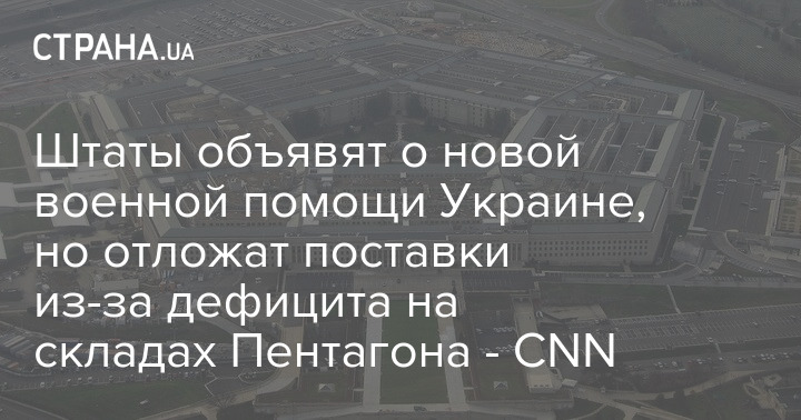 Соединенные Штаты на следующей неделе объявят о выделении Украине значительного пакета вооружений, однако отложат поставки из-за нехватки оружия на складах Пентагона.