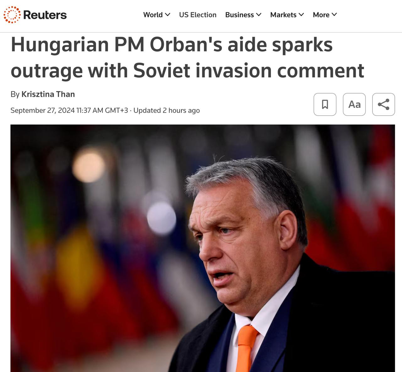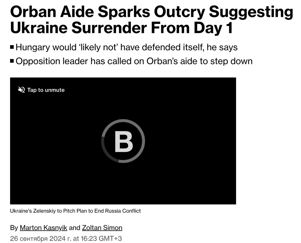 Как пишет Bloomberg, это заявление помощника венгерского премьера вызвало "бурю возмущения" среди противников действующего премьера.