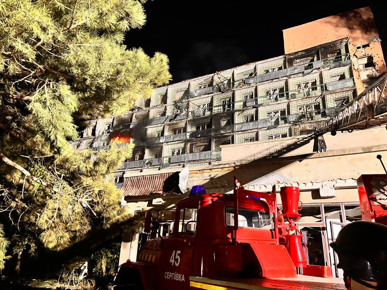 "В результате вражеских обстрелов в Белгород-Днестровском районе произошло возгорание и частичное разрушение базы отдыха. Также выгорели два рядом припаркованных легковых автомобиля", - сказано в сообщении.