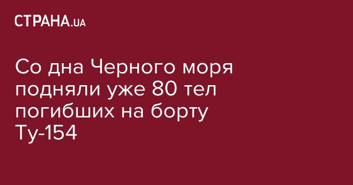 В Черном море на вечер 26 декабря найдены останки порядка 80 пассажиров и членов экипажа разбившегося Ту-154. Тела подняты со дна и поверхности Черного моря, сообщил российскому "Интерфаксу" источник в оперативном штабе на месте ЧС.