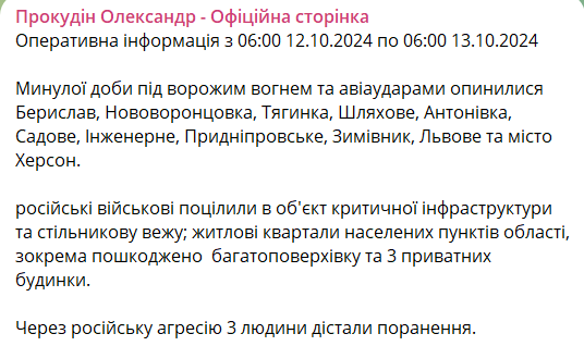 08:00 В Херсонской области за прошедшие сутки в результате российских обстрелов 3 человека получили ранения. Об этом сообщает глава ОВА Александр Прокудин.