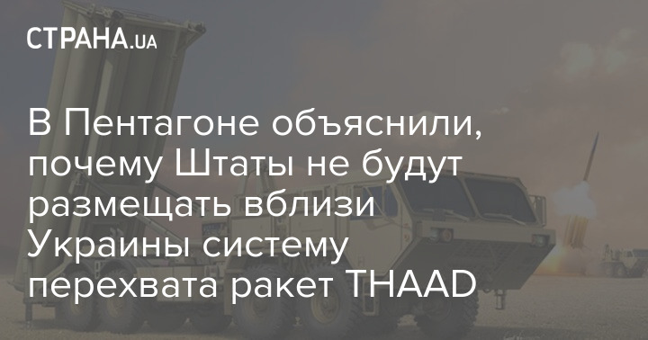 Соединенные Штаты не будут размещать вблизи Украины систему перехвата ракет средней дальности THAAD, чтобы сбивать российские ракеты и дроны.