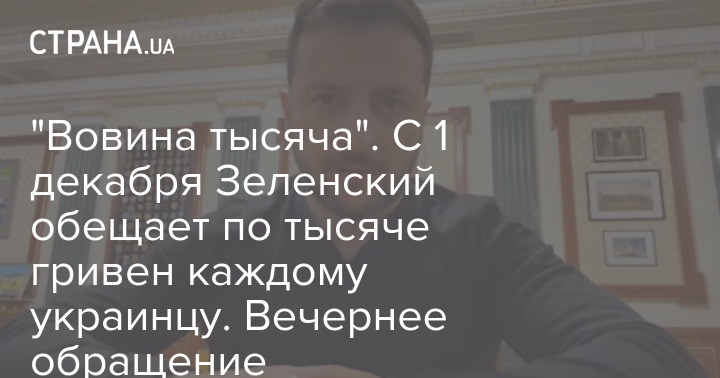 "Вовина тысяча". С 1 декабря Зеленский обещает по тысяче гривен каждому украинцу. Вечернее обращение